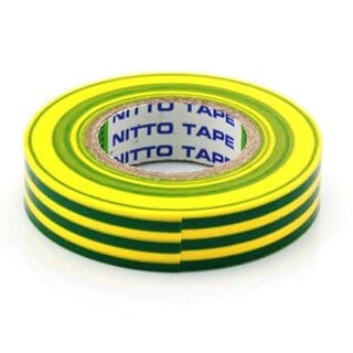 Met lijmlaag op rol van 10 meter. PVC isolatietape 15mm in de kleur geel-groen.