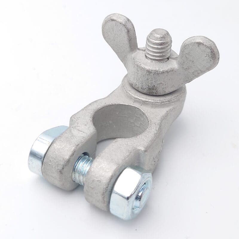 Accupoolklemmen Marine is bestelbaar in plus (M8 en M10 variant) en min (M8 variant) klem. Deze accupoolklem heeft een bevestiging met een vleugelmoer, voor het aansluitmateriaal.