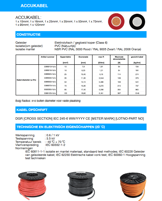 Soepele klasse 6 Accukabel. Heerlijk soepel, oliebestendig, dubbel geïsoleerd en verkrijgbaar in het Rood, Zwart en Oranje. Verkrijgbaar per meter of per Volle rol. Een volle rol is 50M. Wanneer u enkel 4 meter besteld krijgt u een stuk van 4 meter aaneengesloten, dus niet 4 stukken van 1 meter.