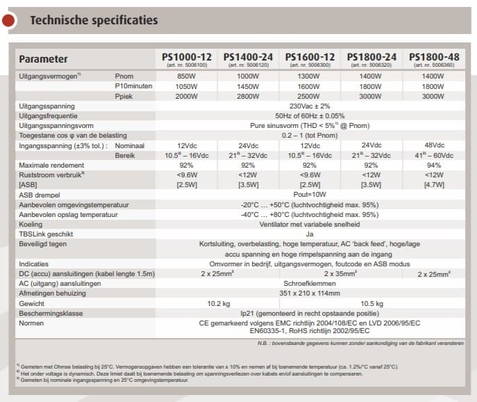 TBS Omvormer Powersine 1800W 24V