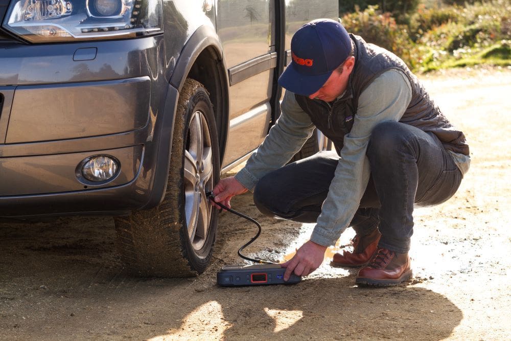De geïntegreerde digitale luchtcompressor pompt uw ??banden moeiteloos op tot 130 PSI, zodat u snel en veilig weer op reis kunt.