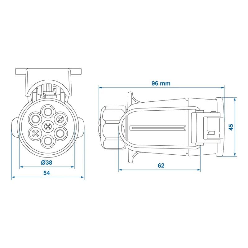 Trailer stekkerdoos 7-Polig van PVC met zwevende haak.