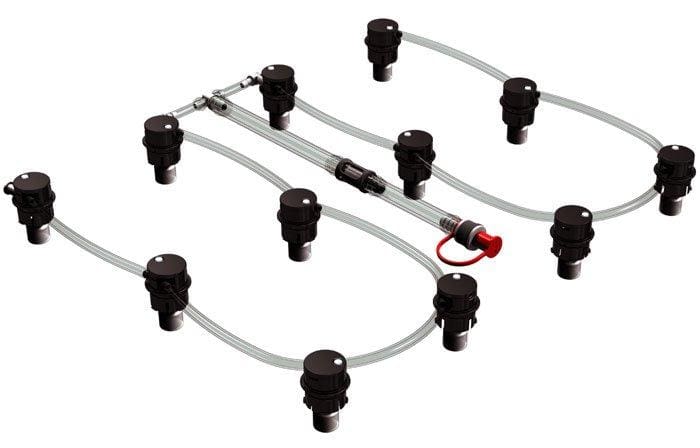 Aquamatic centraal vulsysteem 48V. Wordt geleverd inclusief watervat van 15ltr. Gemaakt voor het vullen van 2V tractiecellen. U ontvangt dus een systeem van 24 waterdoppen.
