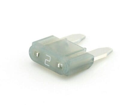 Steek-zekering Mini 2A. Zekering kleur Grijs. Lichtste zekering in het mini steekzekering programma. Toepasbaar in diverse voertuigen en apparatuur.