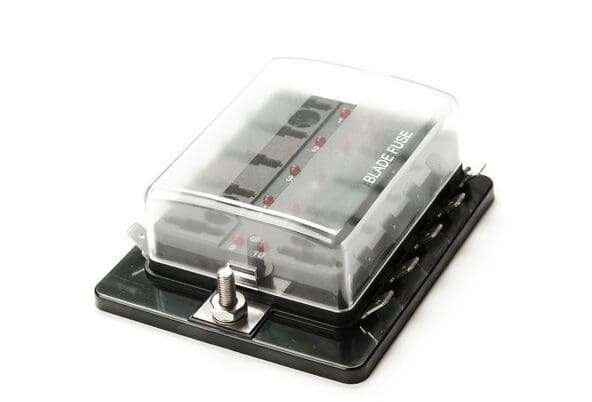 10 weg standaard blad zekeringkast met individuele LED’s die oplichten om aan te geven wanneer er een zekering is doorgebrand. Vermogen is via een gemeenschappelijk stud toe te voeren via elk van de 10 circuits uitgangsverbindingen 6.3mm contactbladen aan de zijkanten van het apparaat. Geleverd met duidelijke beschermende hoes die vastklikt en de basis heeft 4 bevestigingsgaten voor opbouw. De centrale invoer is een M5 stud.