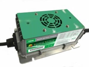 Aces acculader voor Lood modellen. 48V 50A en met een IP67 gradatie. De IP67 is niet van toepassing op de ventilator, de lader zelf zit wel in een gegoten behuizing. Handig voor industriële toepassingen waar in vochtige omstandigheden gewerkt wordt.