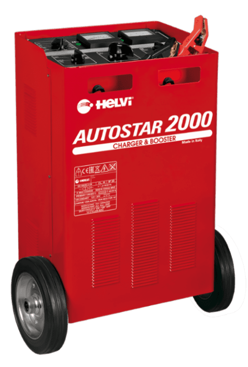 Een Helvi met piekspanning beveiligde mobiele acculader en starter op wielen. Uitgerust met laadstroomregelaar en laadstroomniveau ampèremeter. Beschermd met interne zekeringbescherming tegen kortsluiting of polariteitsomkering en thermostatische bescherming tegen langdurige verhogingen. Ze zijn uitgerust met C.P.S. (autobeveiligingssysteem) om de boostfunctie op een volledig automatische manier te activeren en uit te schakelen om de apparatuur van het voertuig aan boord te beschermen. Onderstaand de eigenschappen van deze Helvi CPS Acculader 12V 24V 150A Booster Starthulp 2000A Autostar 2000.