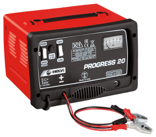 Helvi 16A Acculader 12/24 Volt Progress 20 is een acculader die geschikt is voor 12 of 24 volt Loodzuuraccu’s. Deze Semi-professionele acculader is uitgerust met spannings- en stroomkiezers, ampèremeter, automatische thermische overbelasting en polariteitsbescherming.