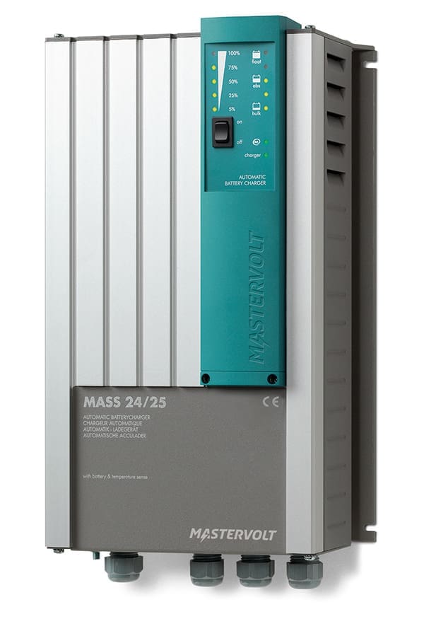 Acculaders van hoge kwaliteit en betrouwbaarheid. Deze zijn voorzien van een drietraps laadkarakteristiek, temperatuurscompensatie, kortsluitingbeveiliging en koeling. Mass acculaders voldoen aan CE-normen, hebben een zeer hoog rendement en zijn geluidsarm. Een aantal Mass-modellen zijn standaard voorzien van hoog / laag spanningsalarm. Ook zijn de meeste types voorzien van een tweede uitgang. De acculaders 24 / 75 en de 24 / 100 kunnen parallel worden geschakeld zodat er één grote lader ontstaat van bijvoorbeeld 3x 100A = 24V / 300A. Deze kan dan met één paneel worden bediend. De acculaders 24 / 75 en de 24 / 100 zijn daarnaast ook nog standaard DNV, Lloyds, Bureau Veritas, RS en Germanischer Lloyds gecertificeerd. De Mass-acculaders waarvan het artikelnummer eindigt op een 6 zijn direct MasterBus-compatible. Oudere Mass-HF laders (art.code eindigend op 0 of 5) zijn d.m.v. een serial-interface koppelbaar aan het MasterBusnetwerk (art.code 77030450).