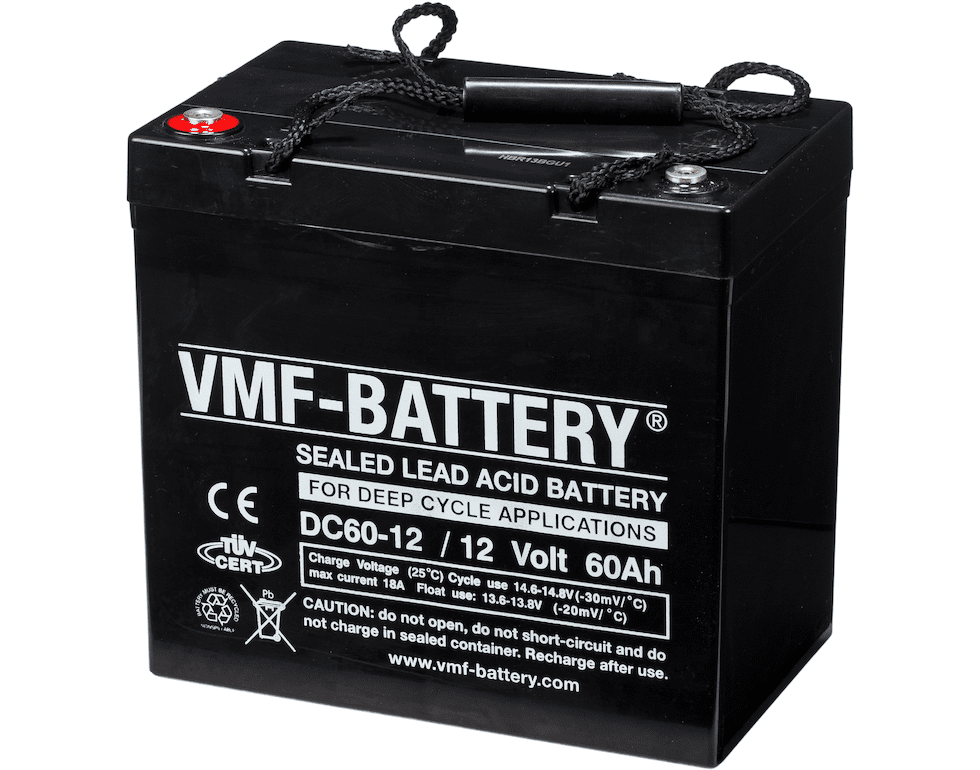 60Ah Deep Cycle accu met AGM technologie van VMF. Bij toepassingen denk aan lichte Caravan Movers, hoogwerkers en andere industrieel of recreatieve toepassingen. Bekijk hieronder de specificaties van de VMF Deep Cycle AGM accu 60Ah DC60-12.