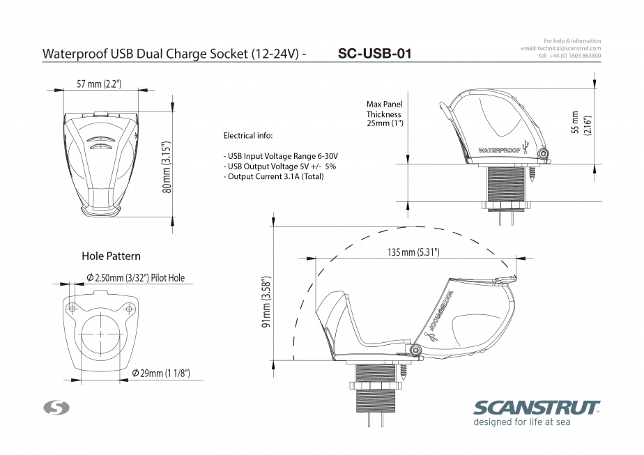 De Scanstrut SC-USB-01 is een Waterproof USB lader met 2 USB outputs (2.1A en 1A op 5V). Deze kleine maar met IPX4 beschermde Scanstrut zorgt ervoor dat uw apparatuur altijd oplaadbaar is. De eigenschappen van deze Scanstrut Waterdichte Dubbele USB lader 12/24V vindt u terug in de foto’s.