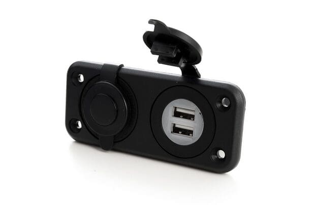 Dual verzonken stopcontact voor 12V of 24V systemen met twee high-power USB-poorten en een 20A sigaretten aansteker. De USB-poorten zorgen voor het snel opladen van iPads, smartphones, tablets en andere mobiele apparaten omdat ze 10W geven (2.1A @ 5V), dat is hetzelfde vermogen als je zou krijgen van uw stopcontact lader thuis.