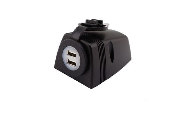 Opbouw stopcontact voor 12V of 24V systemen met twee high-power USB-poorten voor het snel opladen van iPads, smartphones, tablets en andere mobiele apparaten, terwijl u rijdt of vaart. Deze aansluiting biedt 10W (2.1A @ 5V), die hetzelfde vermogen geeft welke je zou krijgen van uw stopcontact lader thuis, Ze zorgen ervoor dat uw uw apparaten weer opgeladen in een minimale tijd. Een blauwe LED verlicht de USB-poorten met een zachte gloed om aan te geven dat het stopcontact is ingeschakeld. Vernikkelde koperen aansluitingen voorkomen corrosie en het beschermt de aansluitingen tegen vuil en vocht wanneer niet in gebruik. Geschikt voor auto’s, campers, campers, caravans, boten, motoren of een voertuig dat 12V / 24V.