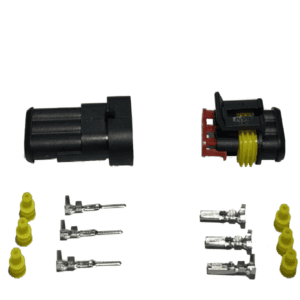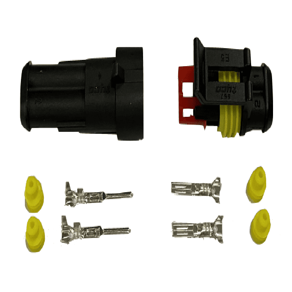 Een complete Superseal connector 2 polige set voor het waterdicht (IP67) maken van een elektrische draad. Eveneens bestand tegen Ozon, benzine, diesel, remvloeistof en motorolie. Zo is het mogelijk een waterdichte verbinding te creëren in diverse toepassingsgebieden.