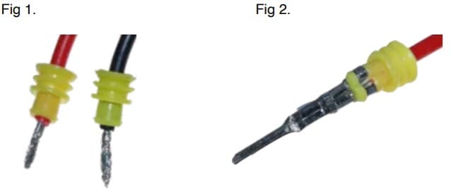 2) Strip de ader en knijp met een kabelschoen krimptang de kabelschoen om de blootgemaakte ader. Fig 2.